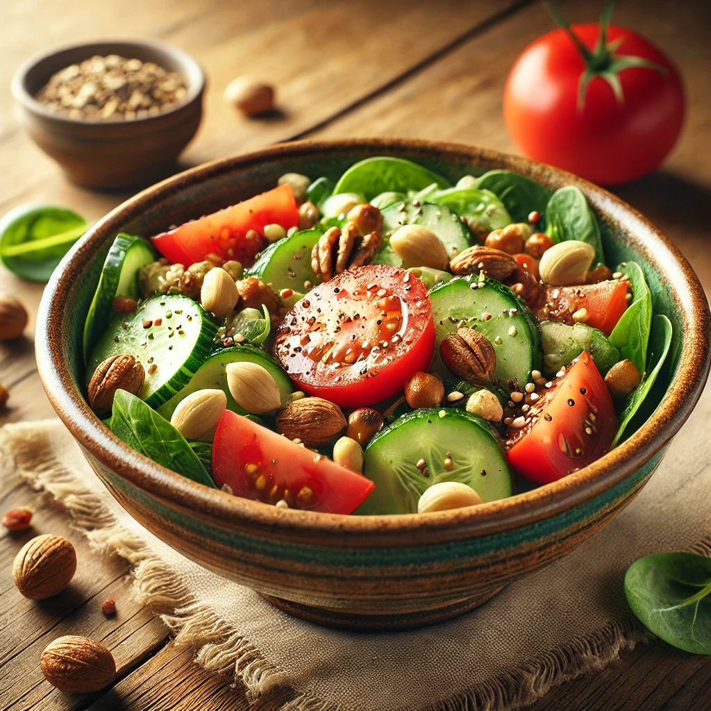 ✔ 토마토 + 견과류 → 새콤+고소 조합으로 샐러드 완성!